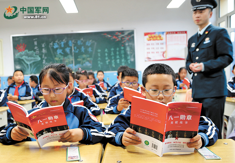 用爱心点燃希望,用行动播洒阳光。黑龙江省军区伊春军分区开展“百名国动人帮扶百名学生”捐资助学活动。图为4月22日,南郡小学学生早读时间阅读军分区捐赠的图书。张凌云摄