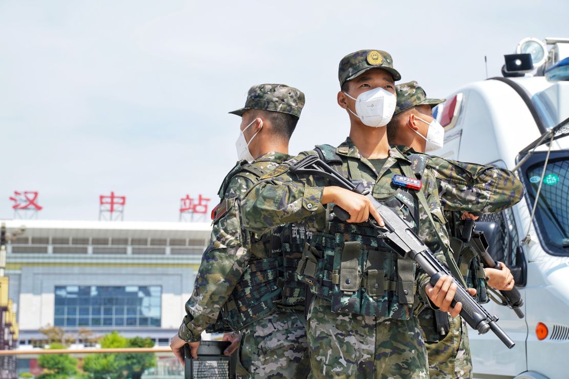 中秋佳节月正圆,不见相聚见别离。中秋节日期间,武警陕西总队汉中支队官兵始终坚守战位,在做好常态化疫情防控的同时,采取定点武装警戒、联勤武装巡逻和全时机动备勤相结合的形式,协同驻地公安机关加强对城区主干道、车站和景区等重点位置和人员密集区的执勤力量部署,确保遇有突发情况第一时间反应,快速高效处置,为中秋期间人民群众平安保驾护航。他们穿梭在熙熙攘攘的人群之中,用忠诚与奉献在执勤一线度过别样的中秋佳节。