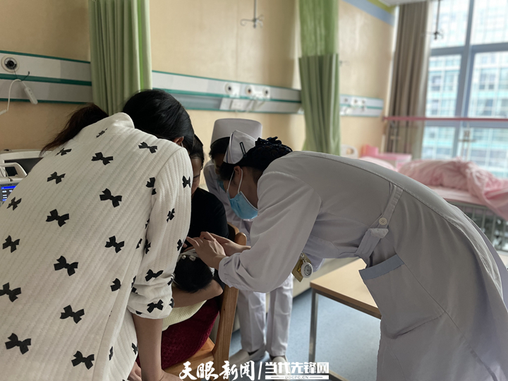 “护士,我娃娃的皮试做完了。”