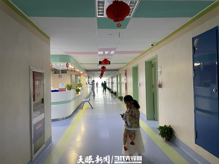 此前掰着指头一天天算,终于等来了虎年春节。在贵阳市儿童医院儿童呼吸科病房门口,大红灯笼挂在顶上,玻璃门上贴着两只送福的小老虎,从走廊望去能感受到浓浓的年味儿。
