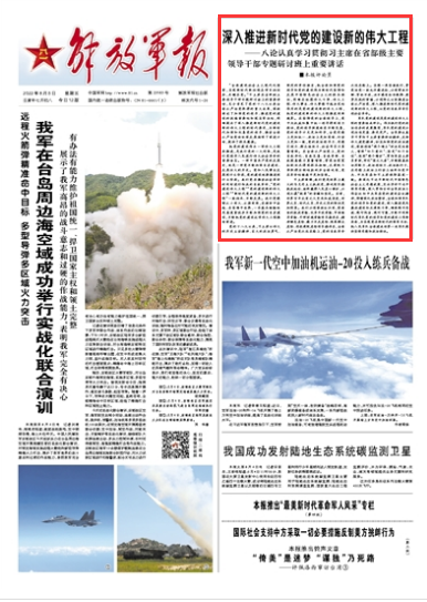 军队党的建设是党的建设伟大工程的重要组成部分。作为执行党的政治任务的武装集团,军队党的建设必须标准更高、要求更严。全军要认真学习贯彻习主席重要讲话精神,发扬伟大建党精神,切实加强党的政治建设,深刻领悟“两个确立”的决定性意义,增强“四个意识”、坚定“四个自信”、做到“两个维护”,贯彻军委主席负责制,牢记“国之大者”,不断提高政治判断力、政治领悟力、政治执行力,在思想上政治上行动上始终与党中央、中央军委和习主席保持高度一致。要深化习近平新时代中国特色社会主义思想武装,突出学好习近平强军思想,深入贯彻古田全军政治工作会议和中央军委党的建设会议精神,持续深化政治整训,全面加强军队党的领导和党的建设,深入推进党风廉政建设和反腐败斗争,确保绝对忠诚、绝对纯洁、绝对可靠,不断开创新时代军队党的领导和党的建设工作新局面,为实现党在新时代的强军目标、把人民军队全面建成世界一流军队提供坚强思想和政治保证。