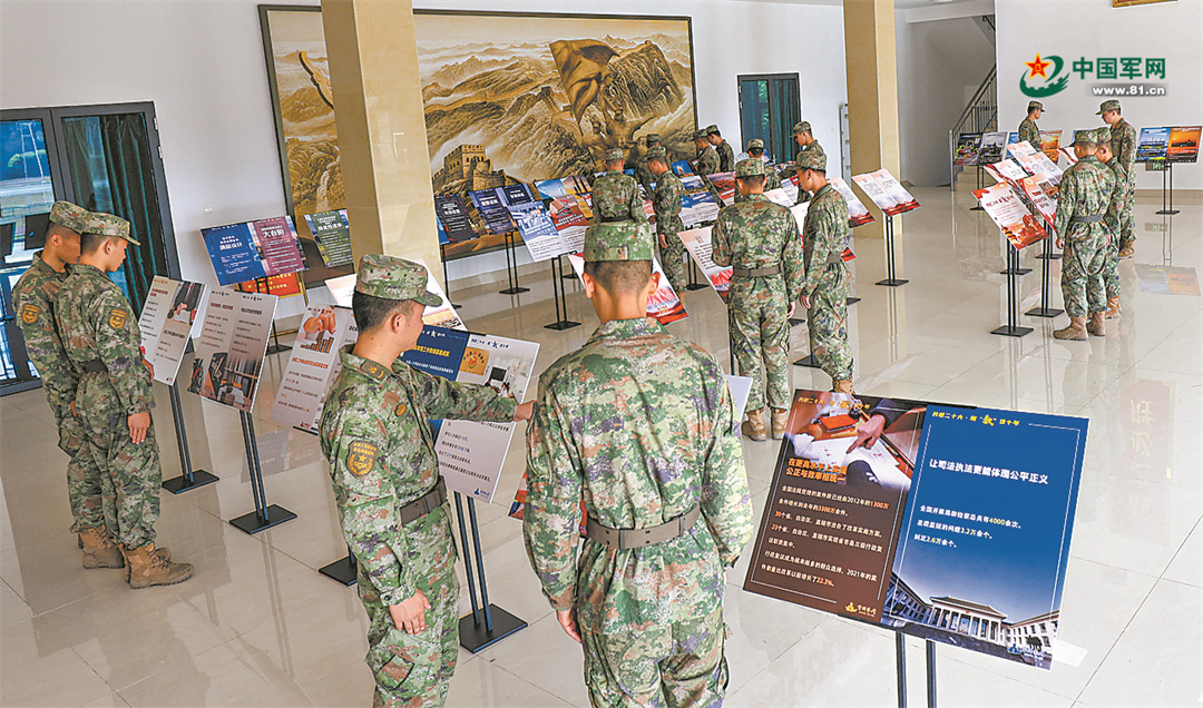 联勤保障部队某团组织官兵观看“非凡十年”主题展,激励官兵积极投身强军兴军伟大实践。张佳豪摄