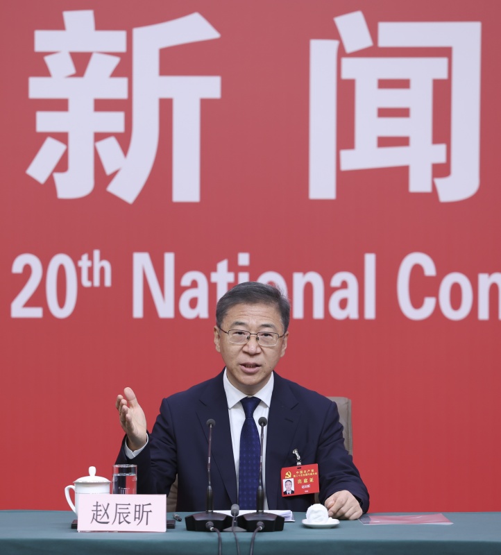 10月17日,中国共产党第二十次全国代表大会新闻中心举行记者招待会,请国家发展和改革委员会党组成员、副主任赵辰昕,国家发展和改革委员会党组成员、国家粮食和物资储备局党组书记、局长丛亮,国家能源局党组成员、副局长任京东介绍贯彻新发展理念、构建新发展格局、推动高质量发展,以中国式现代化全面推进中华民族伟大复兴有关情况,并回答记者提问。