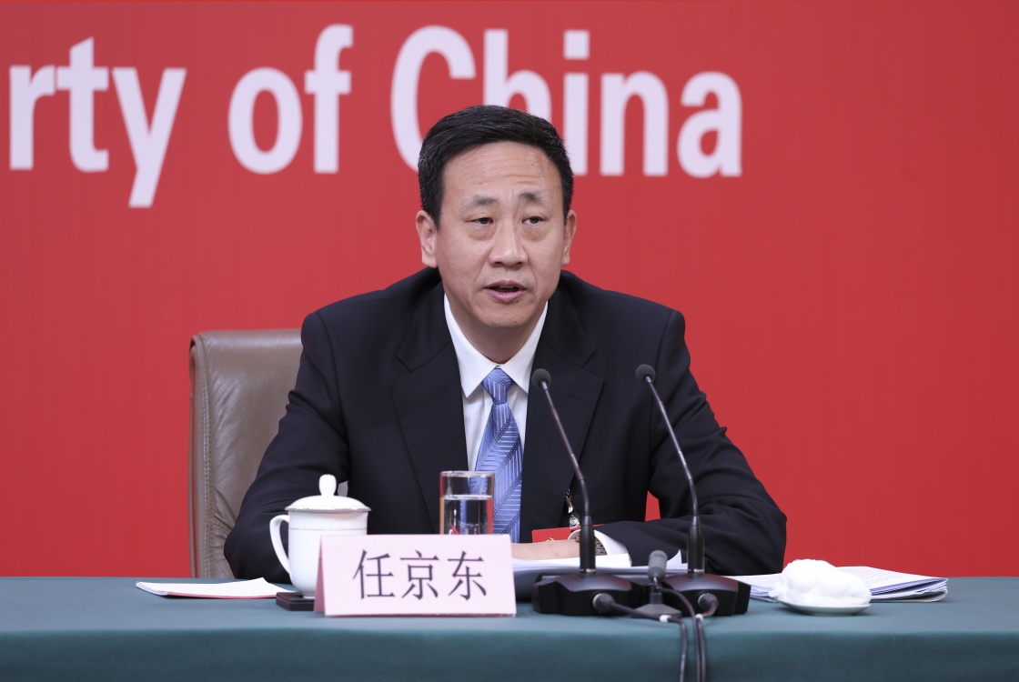 这是任京东在记者招待会上。新华社记者 张玉薇 摄