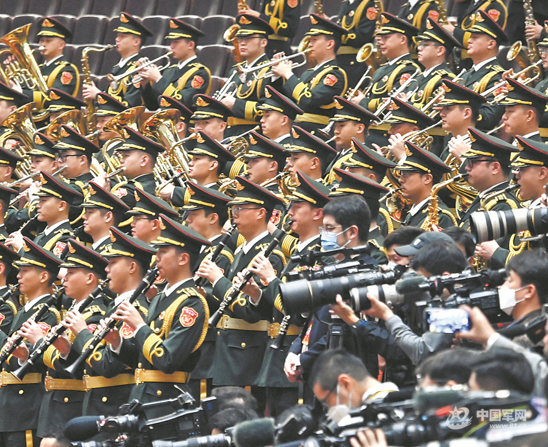 10月22日,中国共产党第二十次全国代表大会在北京人民大会堂胜利闭幕。图为军乐团在大会现场演奏。解放军报记者  穆瑞林摄