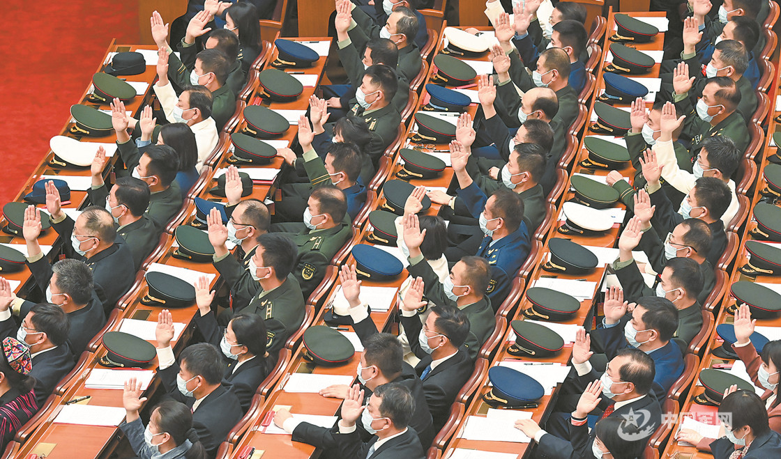 10月22日,中国共产党第二十次全国代表大会闭幕会在北京人民大会堂举行。图为代表们举手表决。解放军报记者  穆瑞林摄