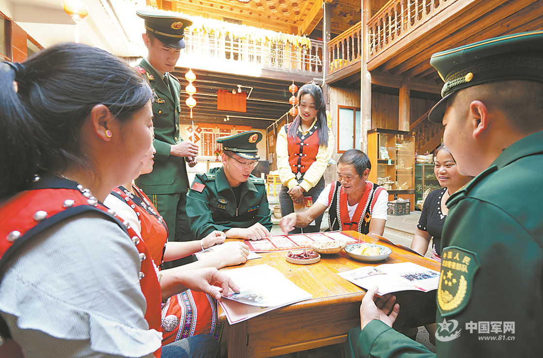 10月21日,武警云南总队保山支队官兵走进驻地佤族村,宣传党的二十大精神。范开浪摄