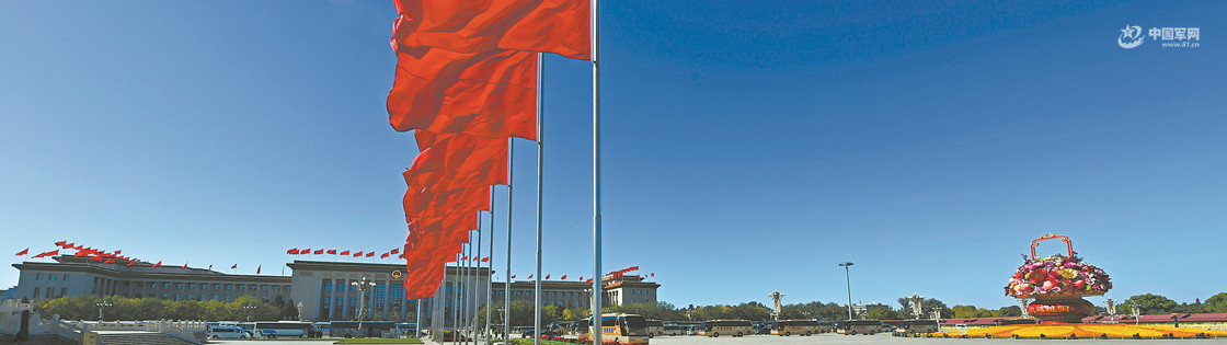 10月22日,中国共产党第二十次全国代表大会胜利闭幕。天安门广场红旗飘扬、花团锦簇,洋溢着喜庆氛围。解放军报记者 穆瑞林摄