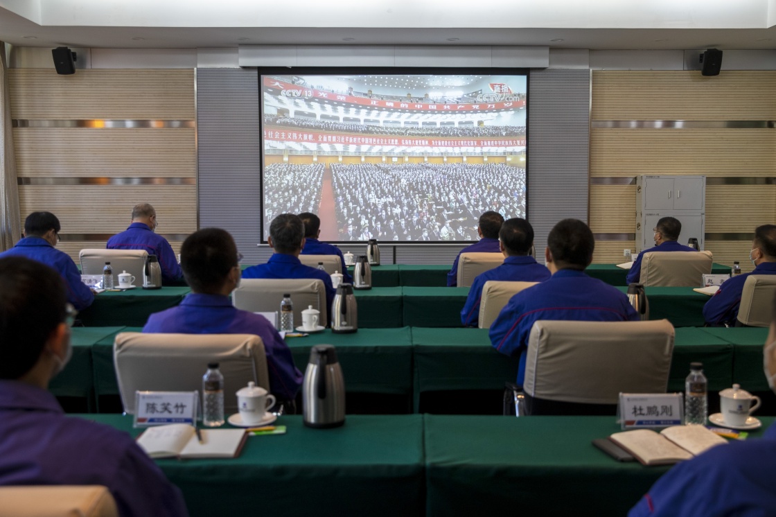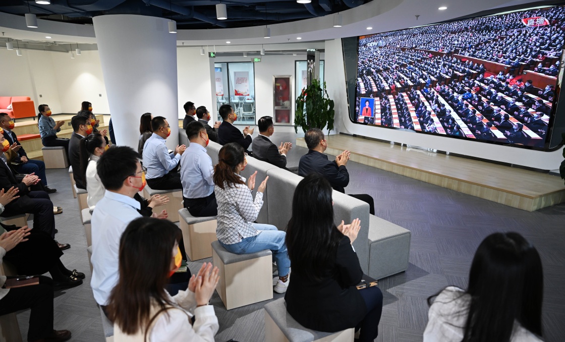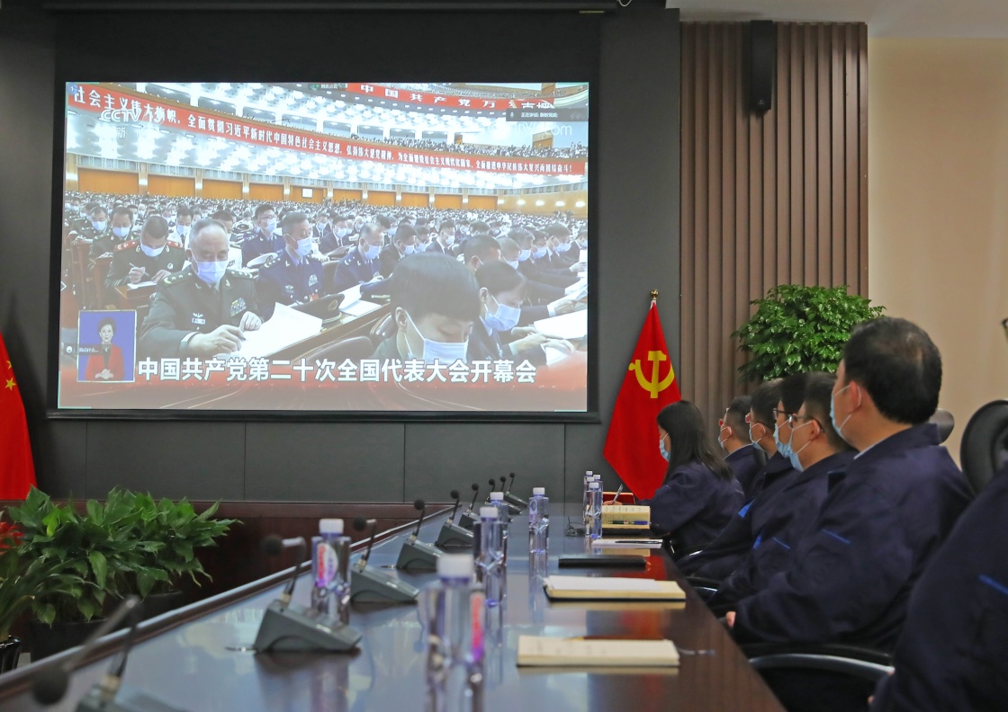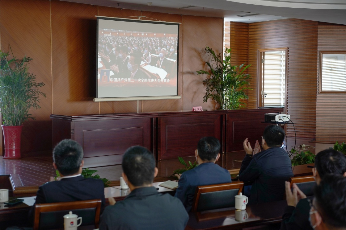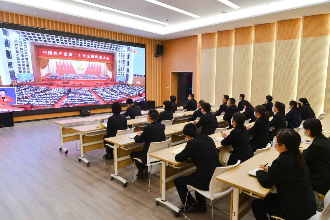 10月16日,在湖北省武汉市,华工科技产业股份有限公司党委中心组集中观看中国共产党第二十次全国代表大会开幕会。