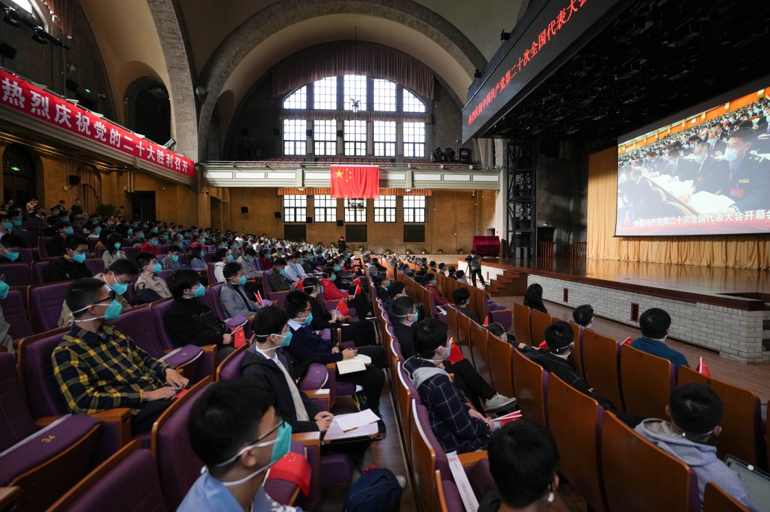 10月16日,西安交通大学部分师生收看中国共产党第二十次全国代表大会开幕会。