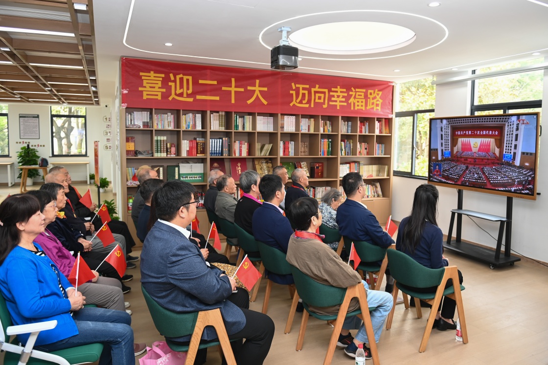 10月16日,浙江省杭州市西湖区翠苑街道翠苑一区社区的党员观看中国共产党第二十次全国代表大会开幕会。