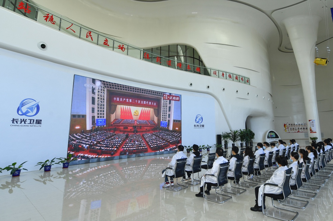 10月16日,在吉林省长春市,长光卫星技术股份有限公司科研人员收看中国共产党第二十次全国代表大会开幕会。