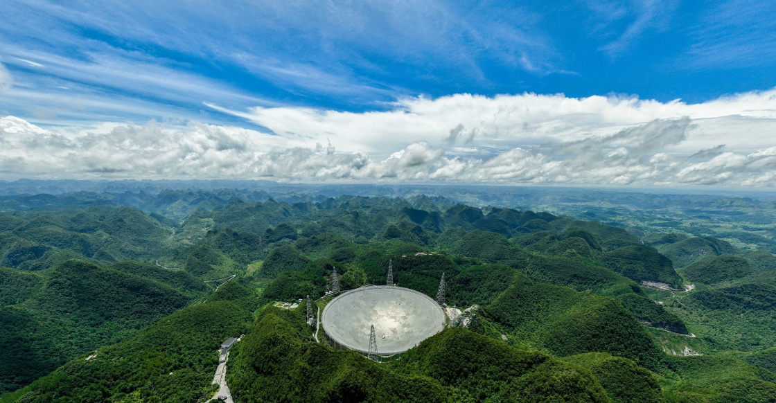 这是“中国天眼”全景(2022年7月21日摄,维护保养期间拍摄,无人机照片)。新华社记者 欧东衢 摄