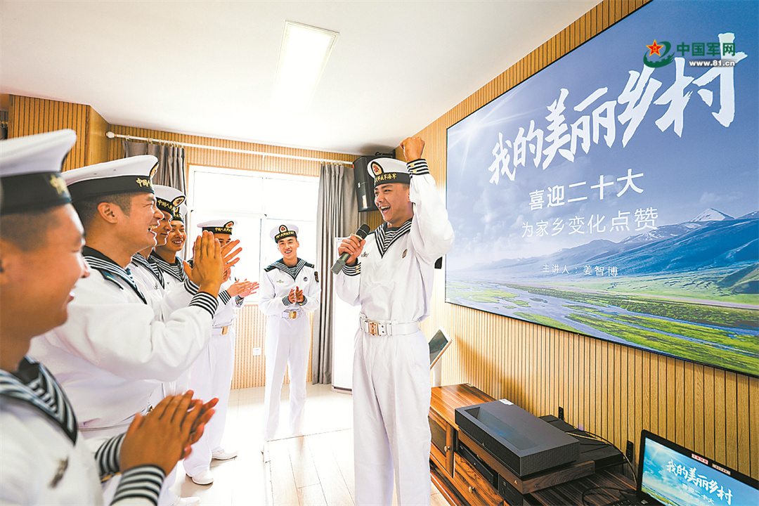 海军某部举行讨论交流活动,官兵通过分享家乡变化,进一步增强了听党话、跟党走的政治自觉。徐子阳摄