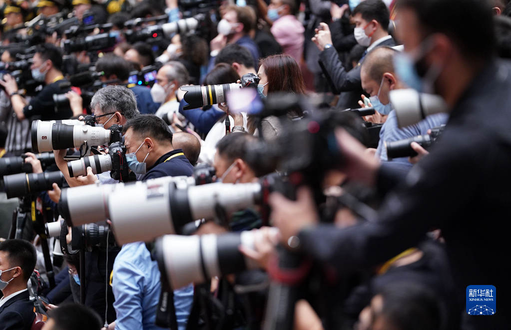 10月16日,中国共产党第二十次全国代表大会在北京人民大会堂隆重开幕。这是记者在采访。新华社记者 陈晔华 摄