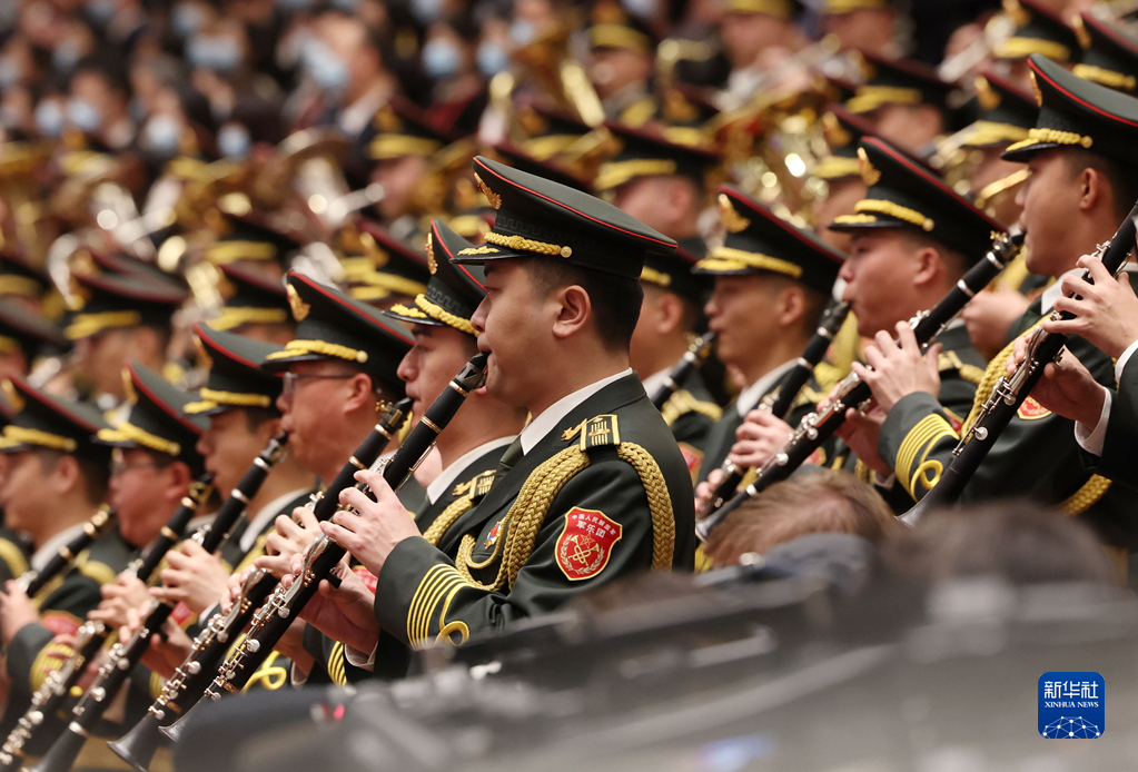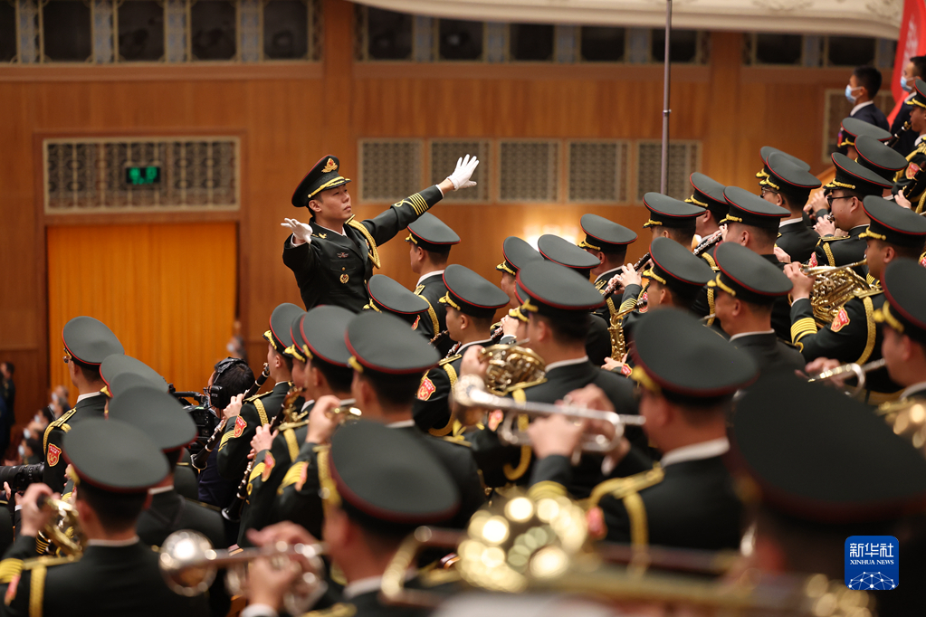 10月16日,中国共产党第二十次全国代表大会在北京人民大会堂隆重开幕。这是军乐团在演奏。新华社记者 程婷婷 摄