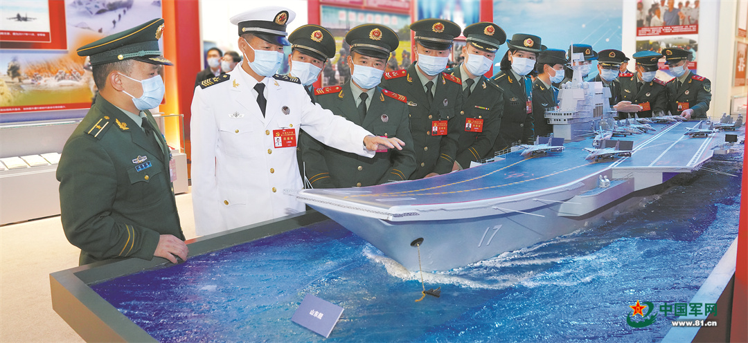 10月17日晚,出席党的二十大的解放军和武警部队代表来到北京展览馆,参观“奋进新时代”主题成就展。解放军报记者 范显海摄