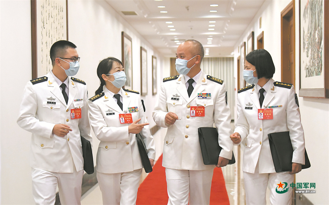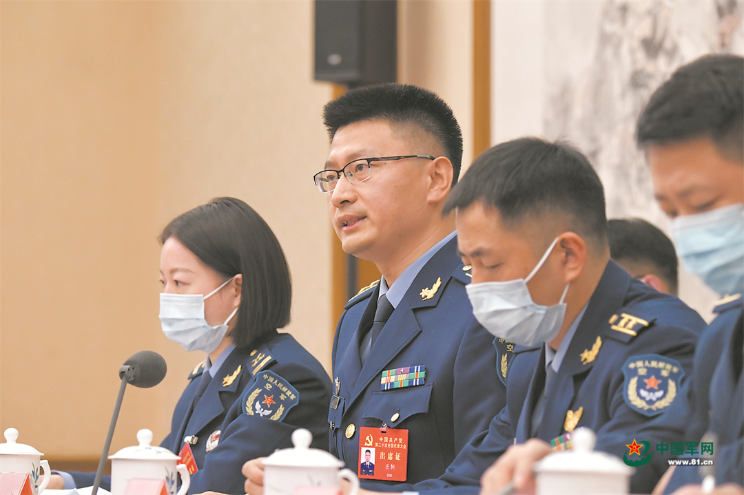10月17日,解放军和武警部队代表团分组讨论党的二十大报告。解放军报记者 范显海摄