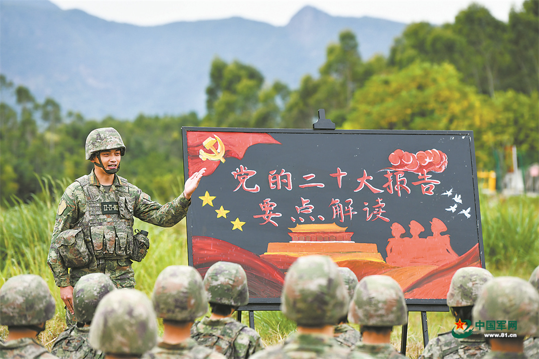 10月18日,第73集团军某旅开展党的二十大报告要点解读活动,激发官兵训练热情。解放军报特约通讯员 刘志勇摄