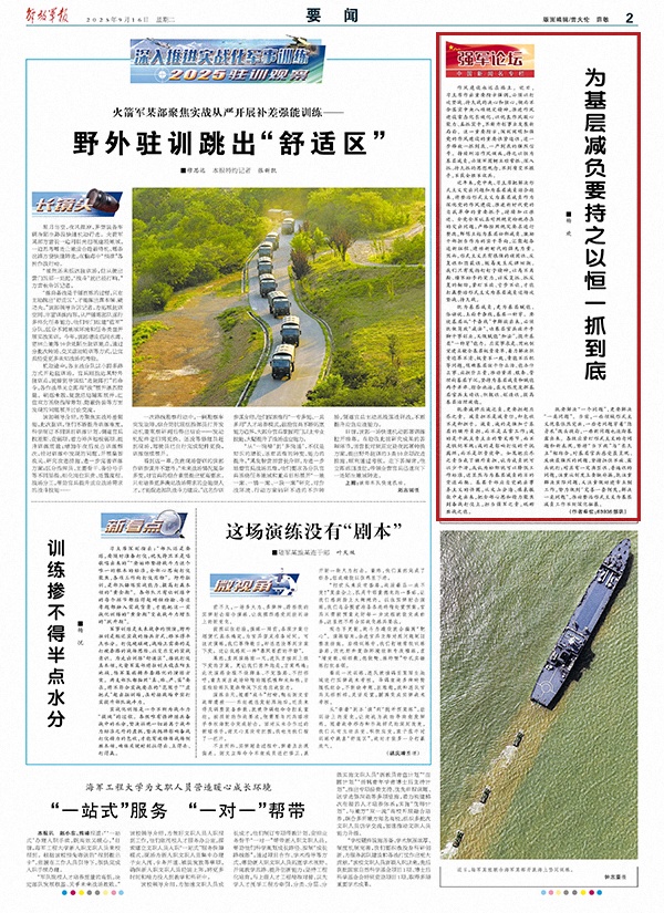 既要减掉应减之负,更要担起应尽之责。减负担不是减责任,卸包袱不是卸担子。减负,减的是强加于基层的额外负担,而不是正常工作;减的是干扰主责主业的繁文缛节,而不是铁纪军规;减的是影响打仗的干扰羁绊,而不是职责使命。如果把应尽之责当成了额外负担,认为减负就可以少干活,或认为松绑就可以降低工作标准,这显然与为基层减负的目的背道而驰。基层干部应自觉跳出事务主义的怪圈,从文山会海、填表报数中走出来,把全部心思和精力聚焦到备战打仗上,担当强军之责,砥砺胜战之能。