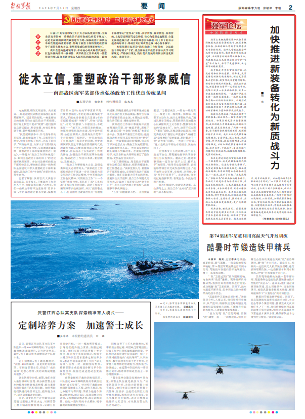 战争既是力量和智力的对抗,也是时间和效率的竞赛。近年来,我军装备更新换代越来越快,新型武器装备大量列装,新型作战力量持续增加,新型安全领域不断拓展。实践告诉我们,新装备新力量早一天形成战斗力,战场上就多一分主动和优势,就多一些决战决胜的筹码。一流的科学技术支撑一流的武器装备,一流的武器装备需要一流的训练来操控。让新型武器加快成为无坚不摧的制胜利器,必须把握新质战斗力建设特点规律,推动新装备新力量加快形成实战能力。