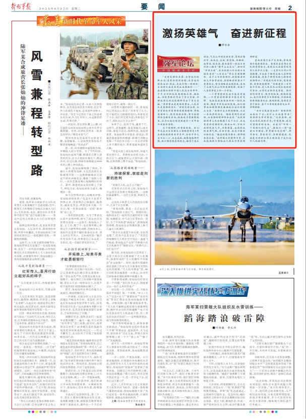 “没有足够的兵器,且拿我们的鲜血去/没有热情的安慰,且拿我们的热血去/热血,是我们唯一的剩余/自由的大地是该用血来灌溉的……”在波澜壮阔的中国人民抗日战争中,千千万万的抗战英雄抛头颅、洒热血,为战争胜利作出了重大贡献,为铸就伟大的抗战精神作出了重大贡献。“革命事业是英雄的事业,人民军队是英雄的军队。”新时代新征程,全军官兵依然需要传承英雄精神、争做英雄传人、续写英雄壮歌,努力把精神状态激发出来,把奋进力量凝聚起来,全力以赴打好实现建军一百年奋斗目标攻坚战。