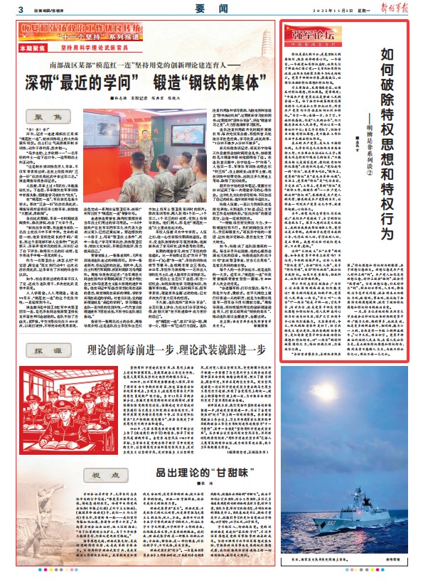 邓小平同志曾深刻指出:“为什么过去很困难的局面我们都能度过?根本的问题是我们的干部、党员同人民群众一块苦。”什么叫“一块苦”?“一块苦”就是干群一致、官民平等、同甘共苦,就是党员干部没有特权思想和特权行为,跟人民群众同心协力创造美好生活,跟广大官兵携手齐心锤炼打赢能力。尤其要看到,今天,部队的物质条件是好了,但官兵的民主意识更强,练兵备战的任务更重,更加需要党员干部坚决破除特权思想和特权行为,以“一块苦”的精神凝聚团结之力、练好胜战之功、打赢攻坚之战。