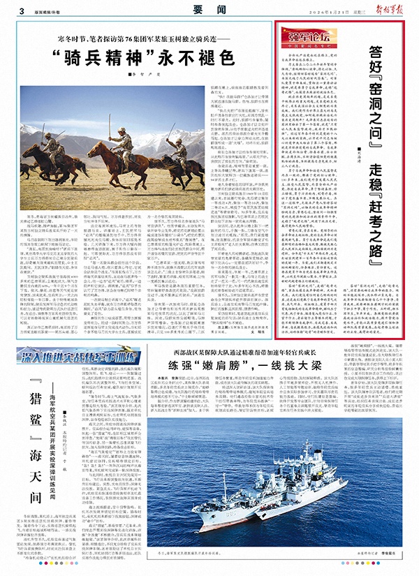 习主席在二〇二六年新年贺词中强调,“要砥砺初心使命,持之以恒、久久为功,继续回答好延安‘窑洞之问’,书写无愧于人民的时代答卷”。对军队党员干部来说,贯彻这一重要讲话精神,就是要勇于自我革命,走稳“赶考之路”,永葆清正廉洁的政治本色。