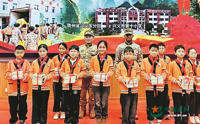 前来送物资的兴义军分区工作人员说:“温暖的爱心,会让学生们记住雷锋,也记住那闪闪的军徽。”
