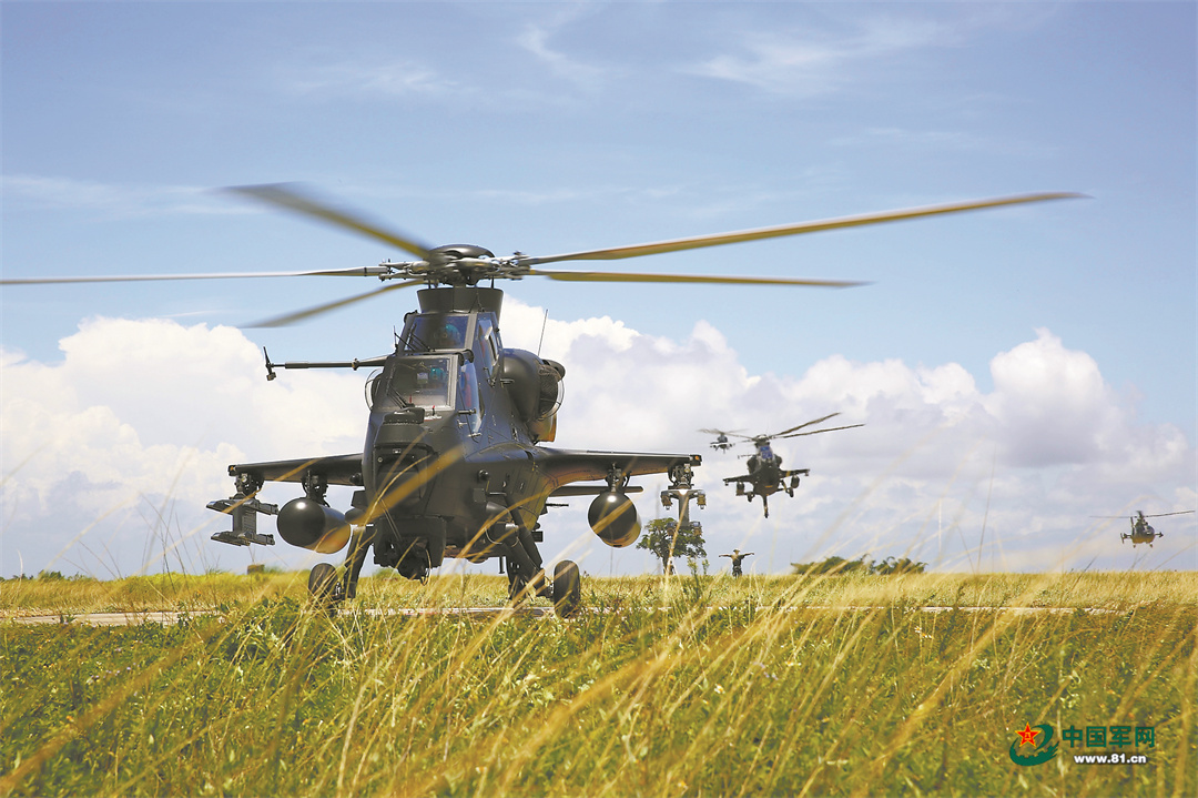第74集团军某陆航旅组织飞行战术演练,一架架战鹰闻令出动。王 宁摄