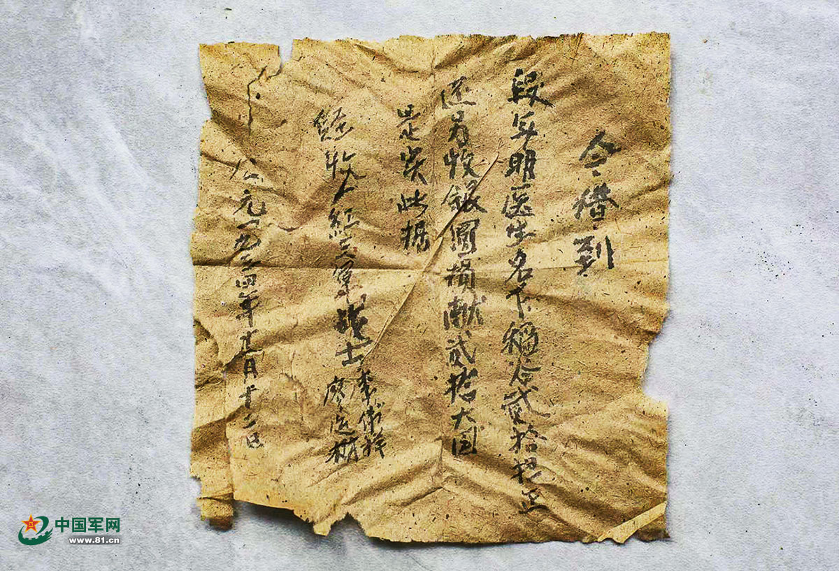 得知笔者来意,段元法小心地从柜子里取出一个竹筒和一个军马铃铛。他打开竹筒,两张泛黄的毛边纸呈现在眼前,上面清晰可见毛笔写就的字迹。摩挲着老物件,段元法向笔者讲起那段老一辈口口相传的往事。