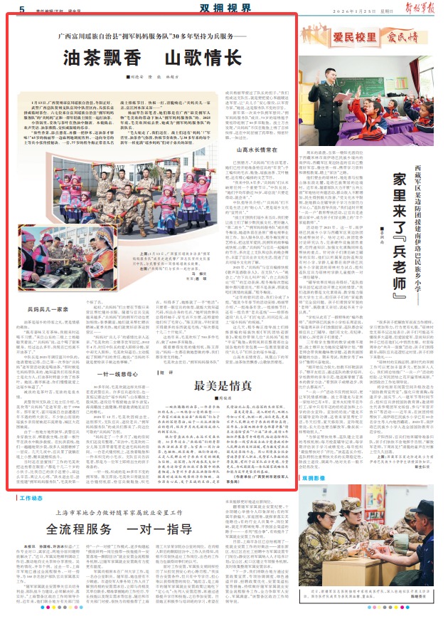 “毛大姐走了,我们还在。战士们还有‘妈妈’!”军营里,油茶香气弥漫,快板节奏欢快,与30多年来的每个新年一样充满“瑶乡妈妈”们对子弟兵的深情。