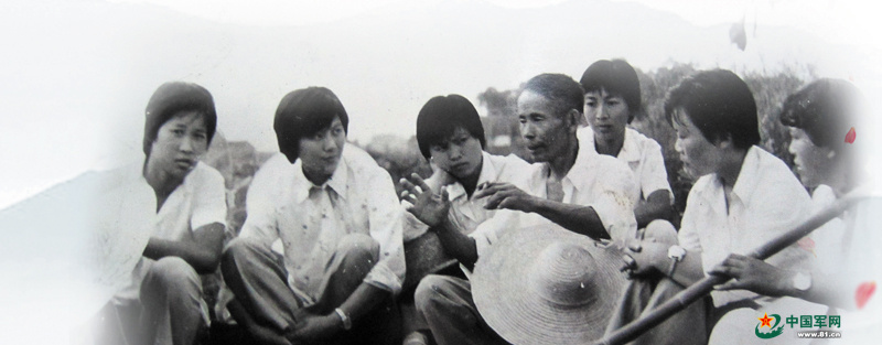 20世纪80年代,“八姑娘”民兵班的姑娘们帮工休息时聆听新四军老战士讲抗战故事。杨连春摄
