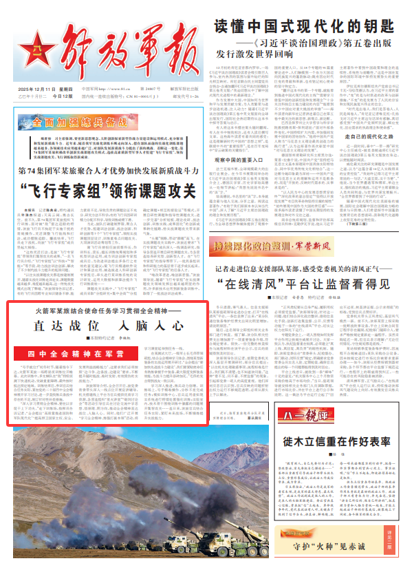 该旅领导介绍,全会召开后,旅党委常委带头深入一线点位开展宣讲辅导,机关搭建线上平台为官兵提供优质学习资源,各营连组织“星火讲堂”“砺剑讨论会”等活动引导官兵在讨论交流中学思想、悟原理、明方向,推动全会精神直达战位、入脑入心。同时,他们广泛开展“学习全会精神、练强打赢本领”活动,将学习课堂延伸到任务一线。