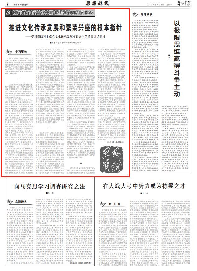 ——学习贯彻习主席在文化传承发展座谈会上的重要讲话精神