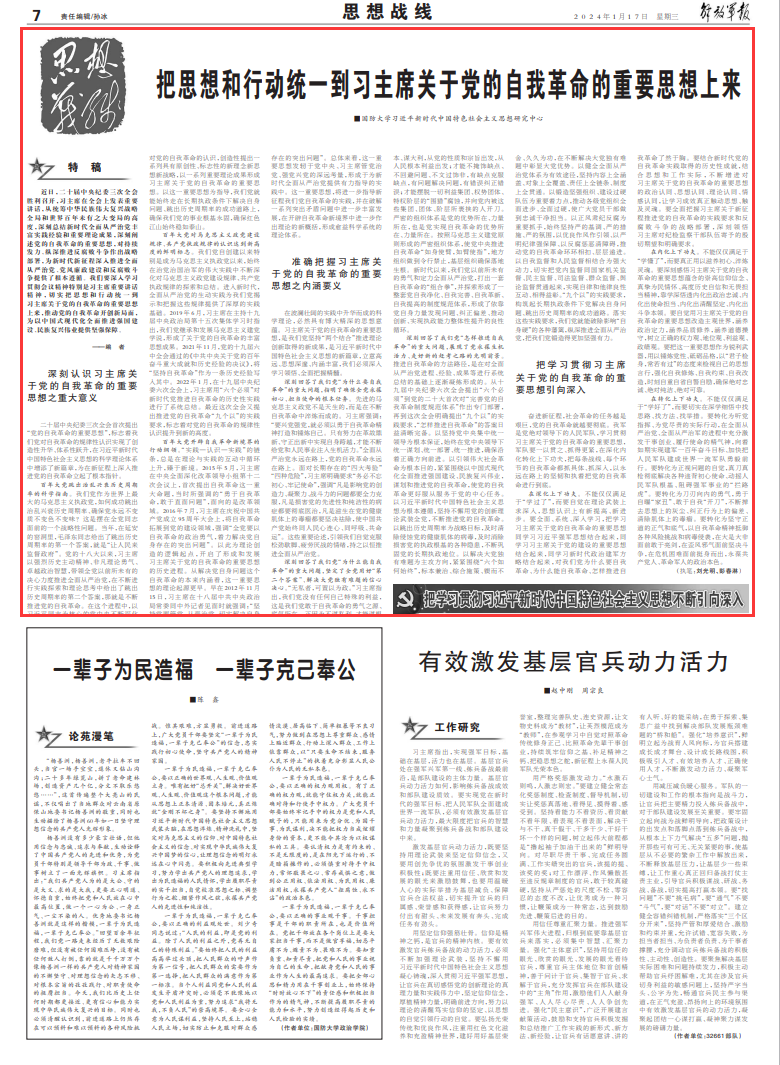 把思想和行动统一到习主席关于党的自我革命的重要思想上来