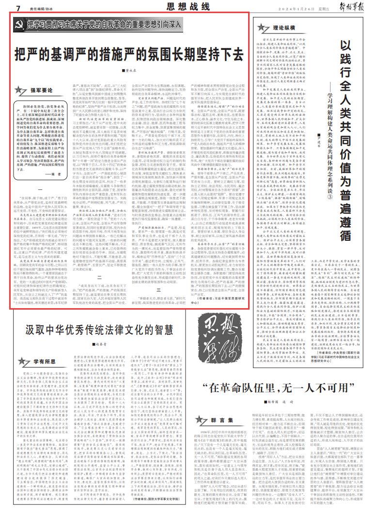 “事辍者无功,耕怠者无获。”新时代新征程,纵深推进党的自我革命,必须把严的精神和要求贯彻到管党治党全过程和各方面,把全面从严治党、全面从严治军不断引向深入,为实现党在新时代的强军目标、把人民军队全面建成世界一流军队提供坚强保证。
