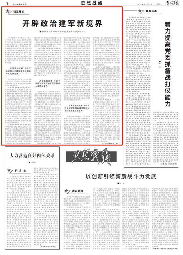 从方法论维度看,开辟了政治建军引领和保证国防和军队建设事业新境界