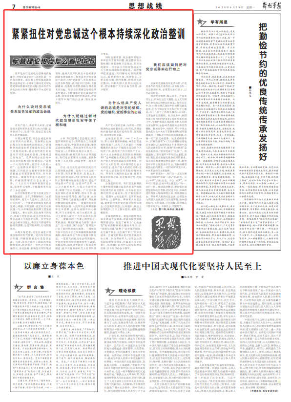 紧紧扭住对党忠诚这个根本持续深化政治整训