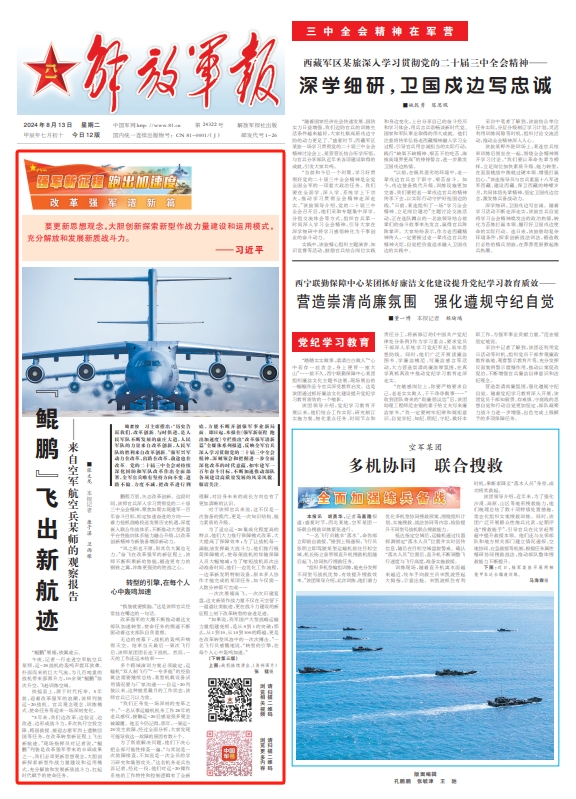 编者按 习主席指出:“历史告诉我们,改革创新、与时俱进,是人民军队不断发展的康庄大道,人民军队的力量来自改革创新,人民军队的胜利来自改革创新。”强军兴军动力在改革,出路在改革,前途也在改革。党的二十届三中全会对持续深化国防和军队改革作出全面部署,全军官兵唯有坚持方向不变、道路不偏、力度不减,把改革进行到底,方能不断开创强军事业新局面。即日起,解放军报在《强军新征程 跑出加速度》专栏推出“改革强军谱新篇”全媒体系列报道,反映全军官兵深入学习贯彻党的二十届三中全会精神,深刻领会和把握进一步全面深化改革的时代意蕴,扣牢建军一百年奋斗目标,不断加速推动部队各项建设高质量发展的风采风貌。敬请关注。