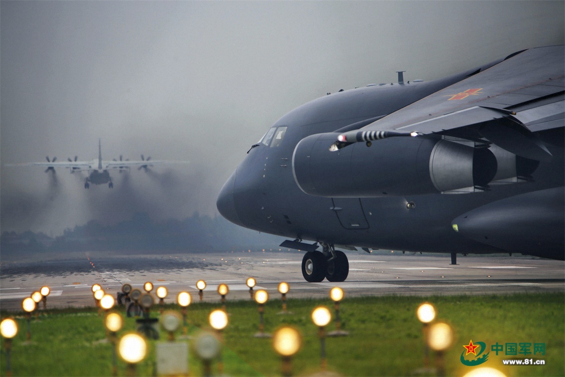 运-20飞机滑向起飞线,待命升空。刘畅 摄