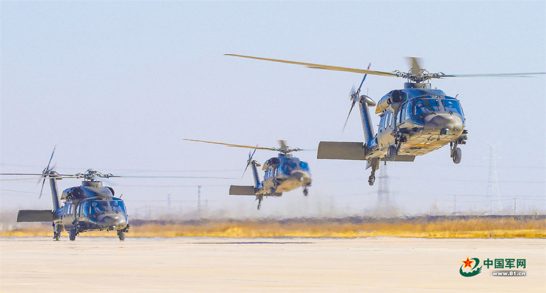 陆军某旅开展编队飞行训练