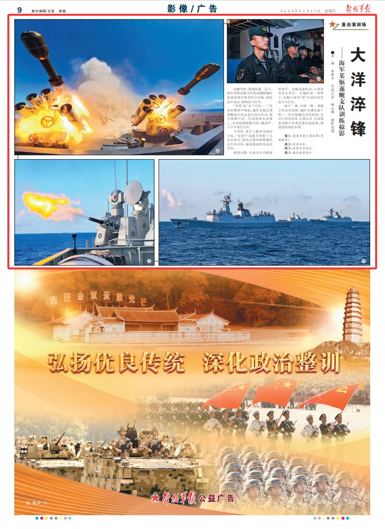 战舰列阵,硝烟弥漫。近日,海军某驱逐舰支队组成舰艇编队赴某海域开展多科目训练,检验战术战法,锤炼战斗作风。