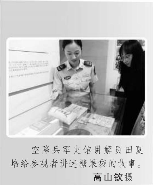 2010年,空降兵军史馆建成后,这个糖果袋成了馆里陈列的文物。糖果袋背后的故事,也被一代代空降兵官兵熟知,从中更加读懂了“军民一家亲”的含义。