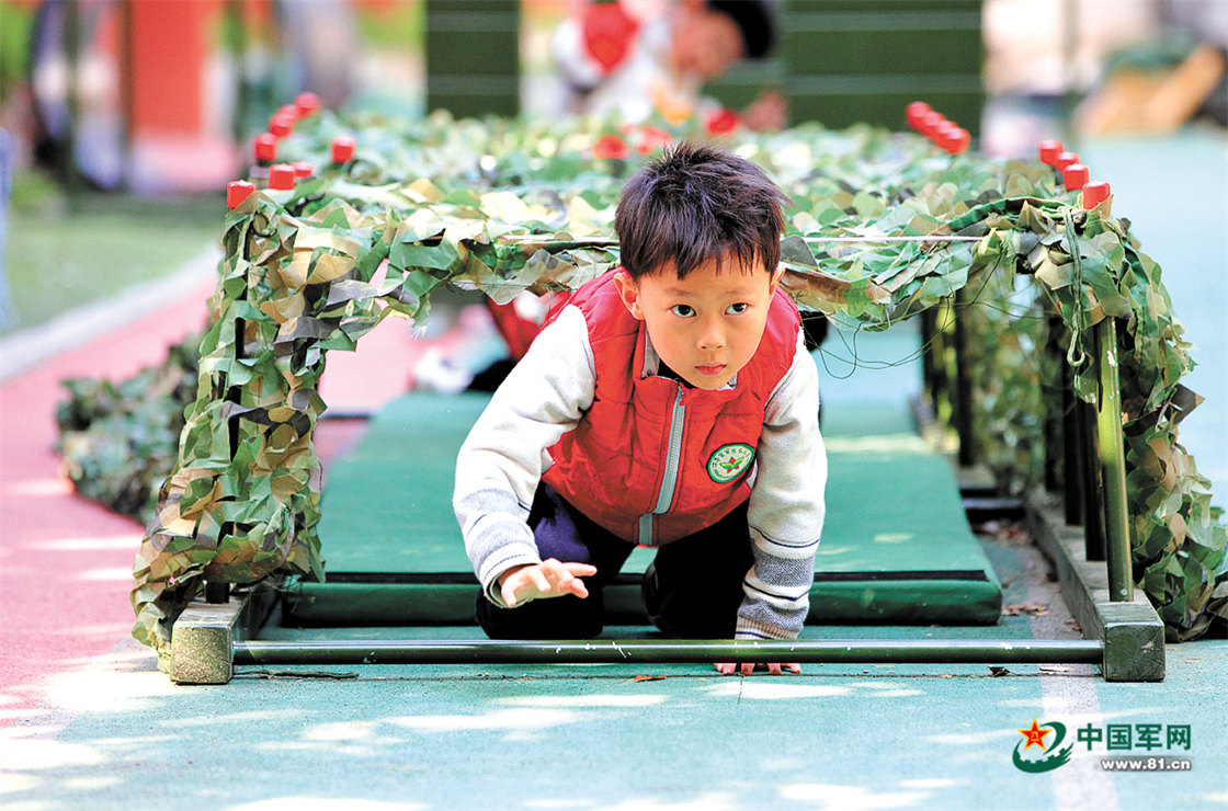 “在幼儿园开展国防教育,要与幼儿生活、学习、游戏有机融合,用幼儿听得懂的语言、喜欢的方式,提升教育的吸引力、感染力。”河南省军区幼儿园园长姚希悦介绍,幼儿园专门设置富有“军味”的教育课程,走出“以军事游戏为主要特色活动”的教育路子,让国防教育有机嵌入幼儿教育。