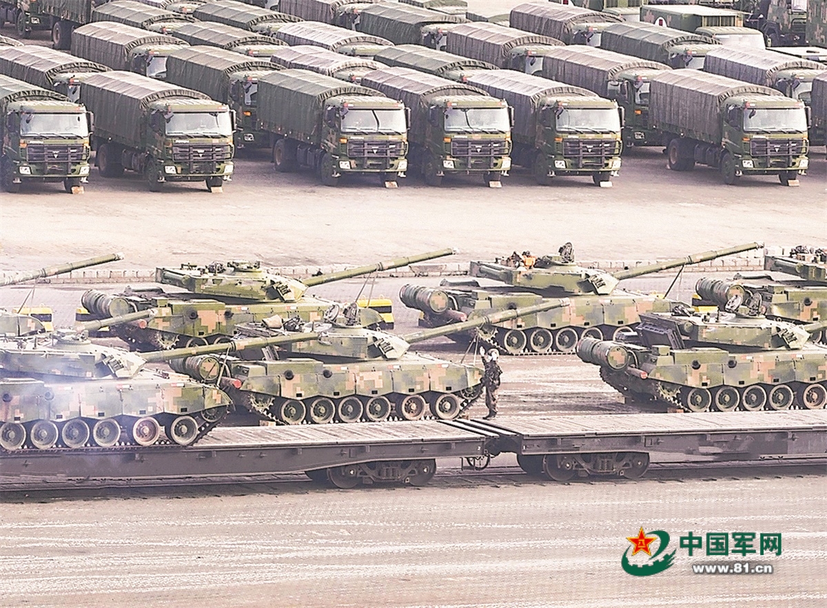 在该中心调度下,部队装备有序装载。李彬喜摄