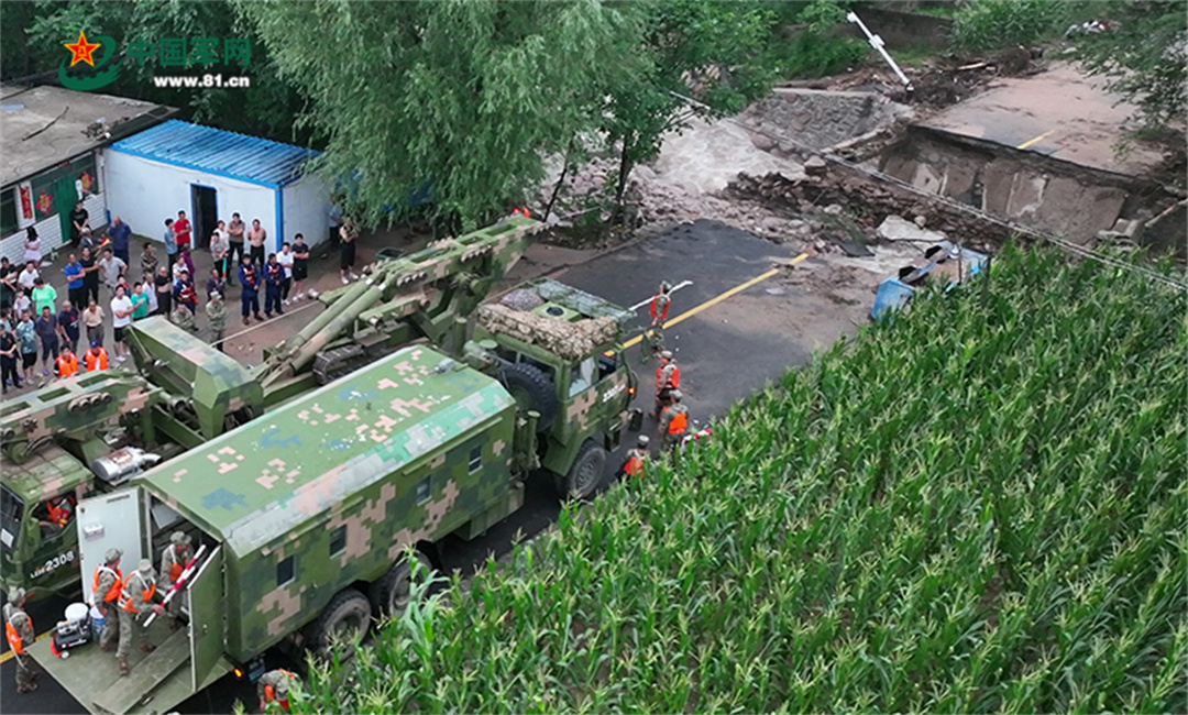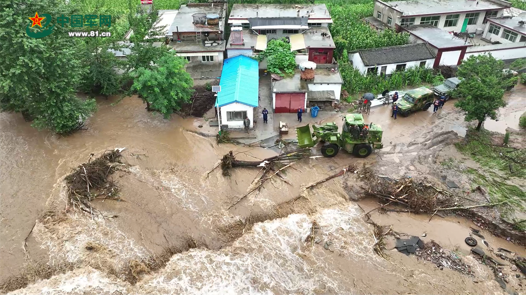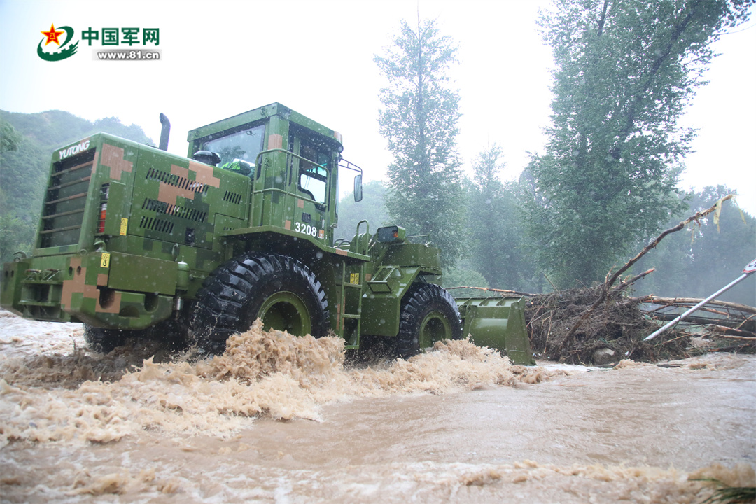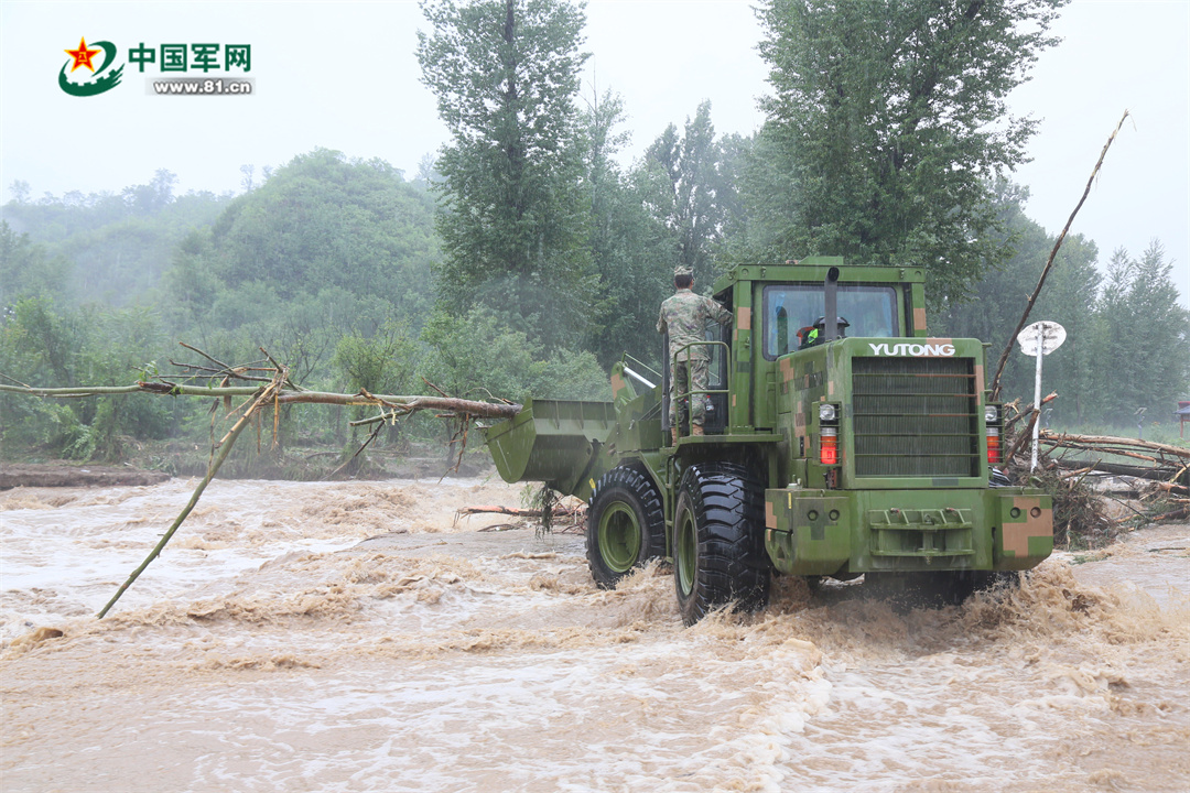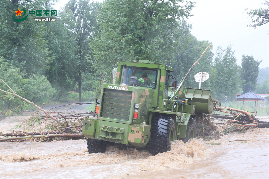 河北省涿鹿县因突降特大暴雨引发山洪,导致多个村落被淹、道路被毁。第81集团军某工化旅连夜赶往灾区遂行救援任务,救援途中疏通主干道上的多个堵塞处,向受灾严重区域挺进。