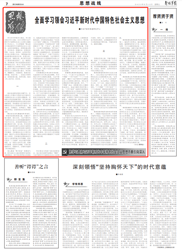 非取法至高之境,不能开独造之域。党的二十大报告提出的“六个必须坚持”,是习近平新时代中国特色社会主义思想的立场观点方法的重要体现。我们要准确把握这一思想的世界观、方法论,坚持好、运用好贯穿其中的立场观点方法。