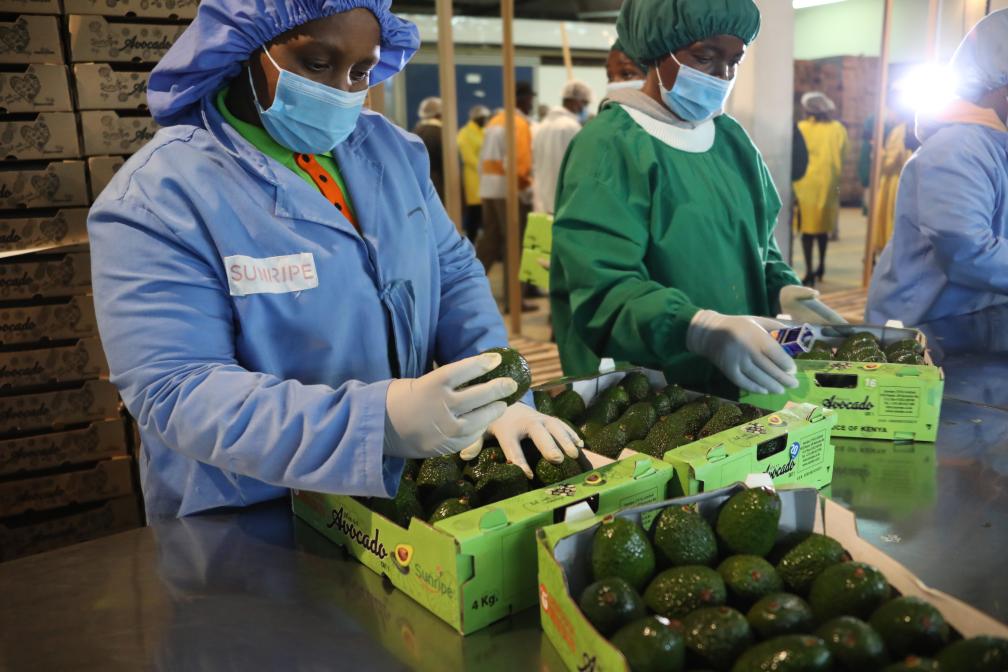 2022年8月2日,在位于肯尼亚利穆鲁镇的桑瑞普工厂,员工将牛油果装箱。新华社记者董江辉摄