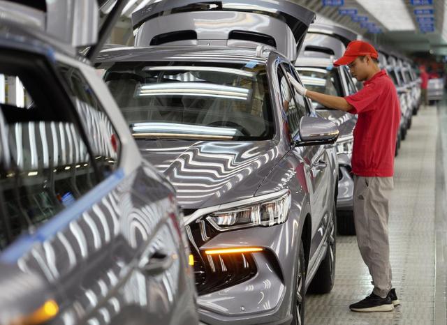 2024年4月24日,工人在位于河南省郑州市的郑州航空港区比亚迪总装工厂新能源汽车“宋Pro”生产线上对车辆进行质检。新华社记者李嘉南 摄